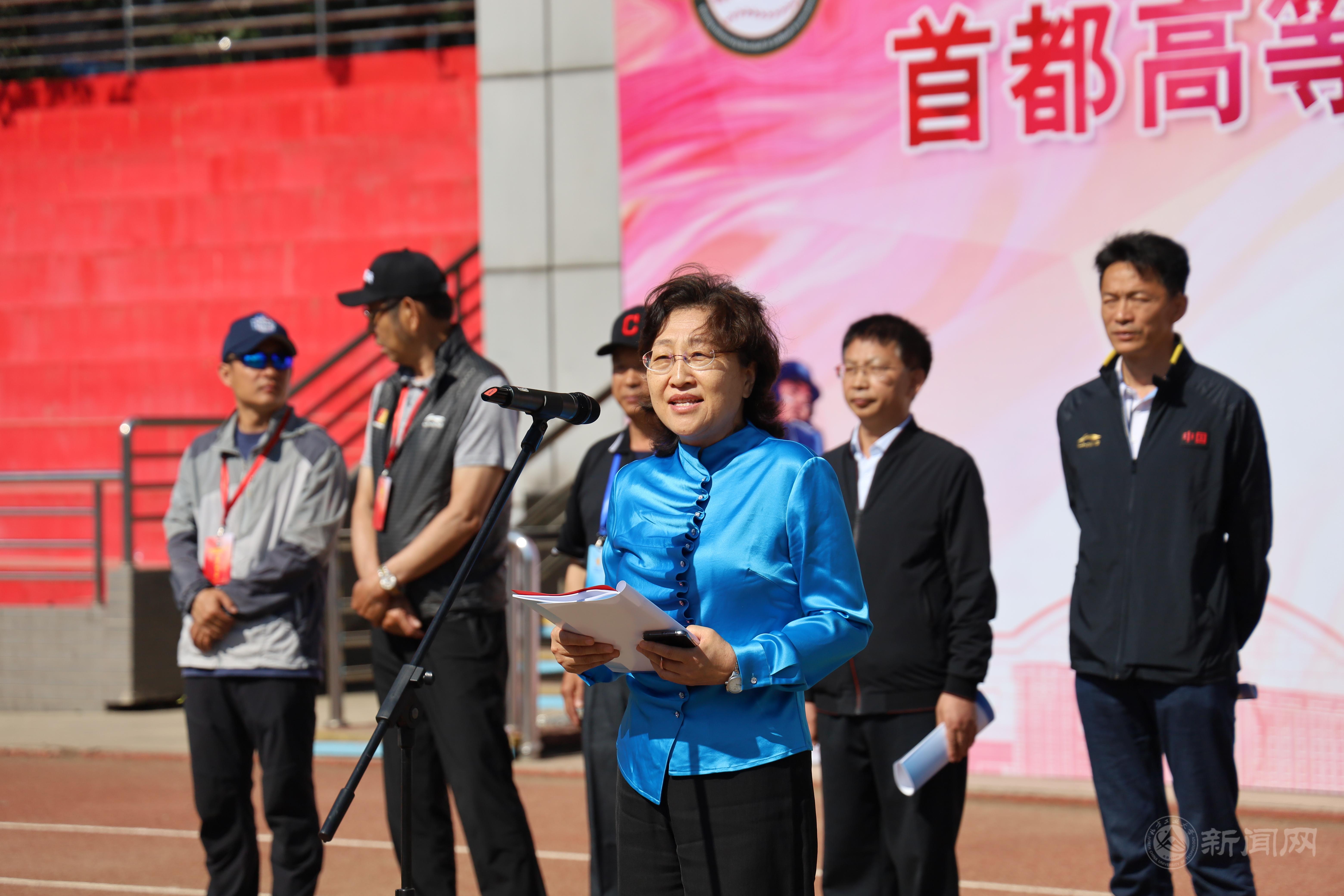 栗苹副董事长致欢迎词并宣布首都高等公司第二十六届棒垒球锦标赛开幕。随后栗苹、杨慈洲、龚维华、康钧共同为比赛开球。