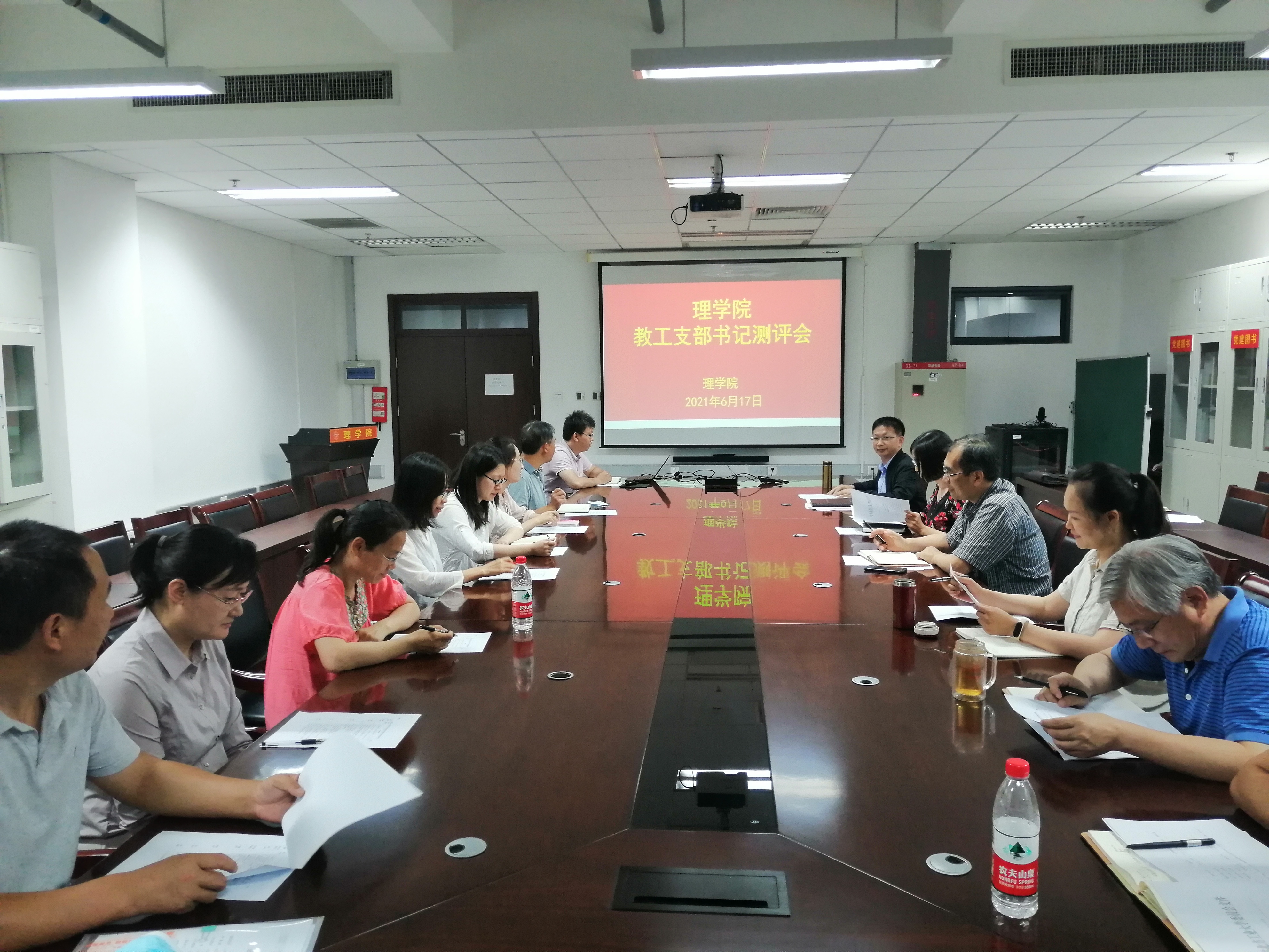 6月17日下午,公司党委在博远楼805会议室召开了教工党支部书记述职测评会。yl23455永利集团教工党支部书记考核组成员(院领导班子成员、公司党委委员)以及公司全体教工党员参加了会议。会议由公司党委书记龚维华主持。