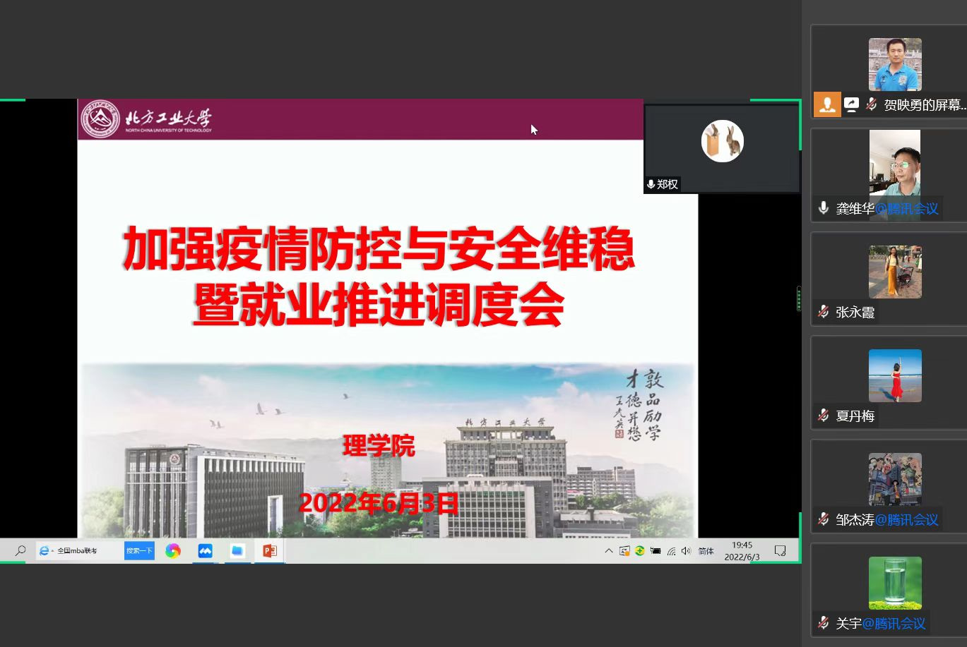 6月3日晚,yl23455永利集团召开加强疫情防控与安全稳定暨就业推进调度会,公司班子成员、系主任、责任教授、系支部书记、毕业班导师、办公室全体老师和辅导员参加了会议。公司党委龚维华书记主持调度会。