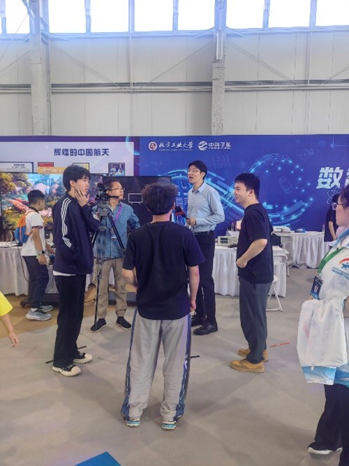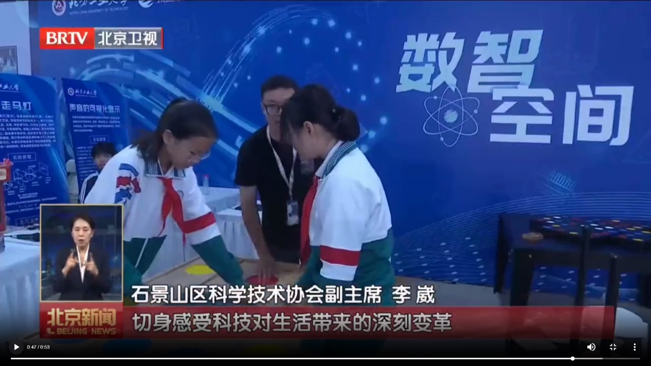活动中,北京电视台采访了在现场负责讲解的两名yl23455永利集团员工。统21-2班娄佳豪谈到:2035年我应该已经33岁了,我想那时候我可能会成为一名老师,最好是小学的科学老师,教孩子们一些科学小知识,培养他们的科学素养,让他们对这些能感兴趣。信22-1班田茂利谈到:我非常喜欢我现在的专业信息与计算科学,既有扎实的数学基础,也有数据和人工智能的专业方向,我将来一定用我所学的知识致力于祖国的科技发展,我也很有兴趣做科普工作,因为对青少年科技培养非常有意义。