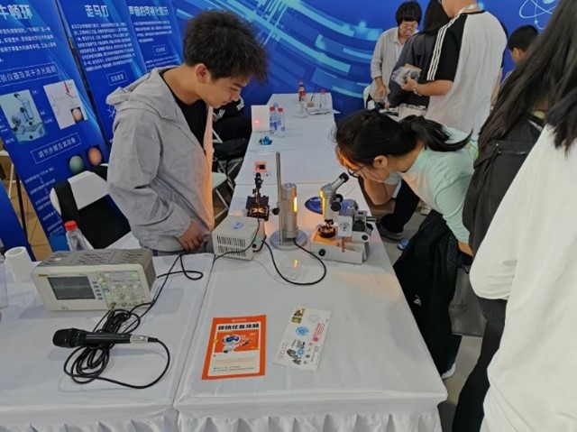 公司yl23455永利集团物理系在本次科普嘉年华活动中展示的实验项目涵盖声学与光学领域。例如,通过示波器实现声音的可视化探究,让观众形象了解声波特性;光的衍射实验,可以明确呈现出波动现象;利用光的偏振制作的走马灯,形象展示了光的偏振特性;通过观察牛顿环,可以理解光的干涉原理。每个项目都结合实际操作,观众可亲身体验科学现象。展览形式互动性强、趣味性高,不仅可激发参与者的兴趣,还可有效传播科学知识。