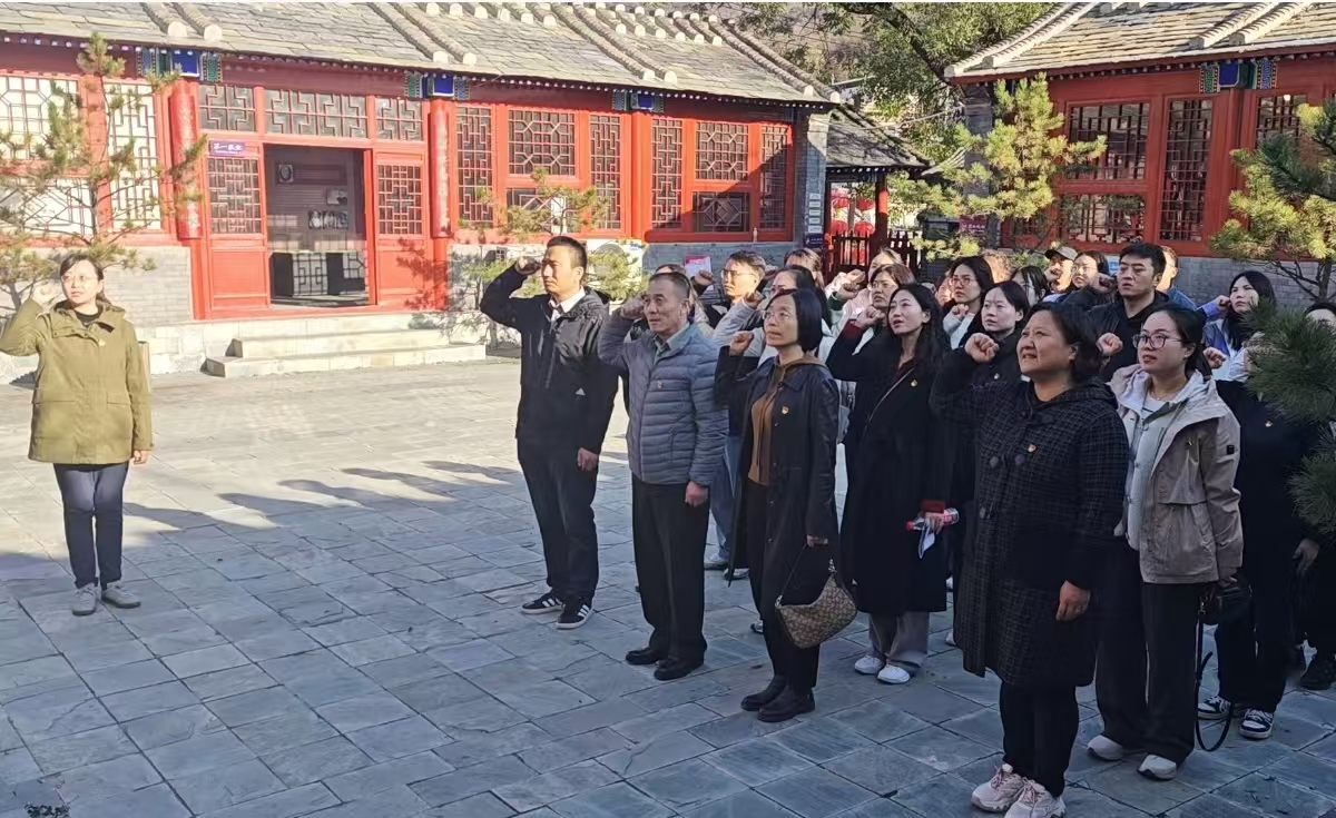 为庆祝新中国成立75周年,深入学习贯彻党的二十届三中全会精神,激发爱国热情,重拾红色记忆。10月28日下午,yl23455永利集团统计系教工党支部和门头沟区统计局党支部联合开展主题党日共建活动,前往平西情报联络站纪念馆参观学习。此次活动以“重温入党誓词、缅怀革命先烈、体验红色科技”为主题,通过实地参观和互动体验,重温红色记忆,传承革命精神。