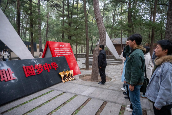 讲解结束后,在庄严肃穆的“一二·九”运动纪念亭前,党支部副书记付军同志带领支部党员郑重举起右拳,重温入党誓词。全体同志神情肃穆、目光坚定,以发自肺腑的洪亮声音,牢记“对党忠诚、永不叛党”的铮铮誓言。