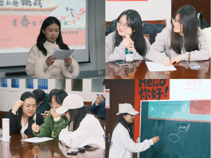 本次活动以“迎新年、聚青春、共奋进”为主题,精心设计了“新年拼词”、“新年画卷猜猜猜”、“新年曲库大师”三大趣味环节。各环节紧扣新年文化内涵,既有蕴含美好祝愿的词汇创作,也有描绘传统习俗的即兴绘画,更有耳熟能详的佳节旋律传唱。同学们在互动中沉浸体验元旦的喜庆与温暖,进一步感受到中华优秀传统文化的魅力。活动现场气氛活跃,大家踊跃参与、配合默契,每一次抢答、每一次协作都洋溢着青春的热情,欢声笑语中满载对新一年的向往与期待。