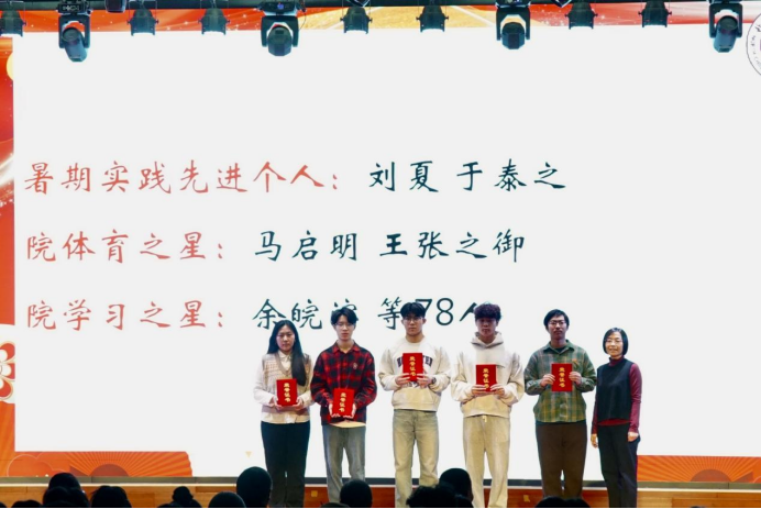 表彰环节中,公司对获得国家奖学金、国家励志奖学金、市级三好员工等重大奖项的学子,以及在“一二·九”、“五四”评优中表现突出的先进个人与集体、暑期社会实践先进个人、院体育之星、院学习之星进行了表彰,与会领导为获奖员工代表颁授荣誉证书。