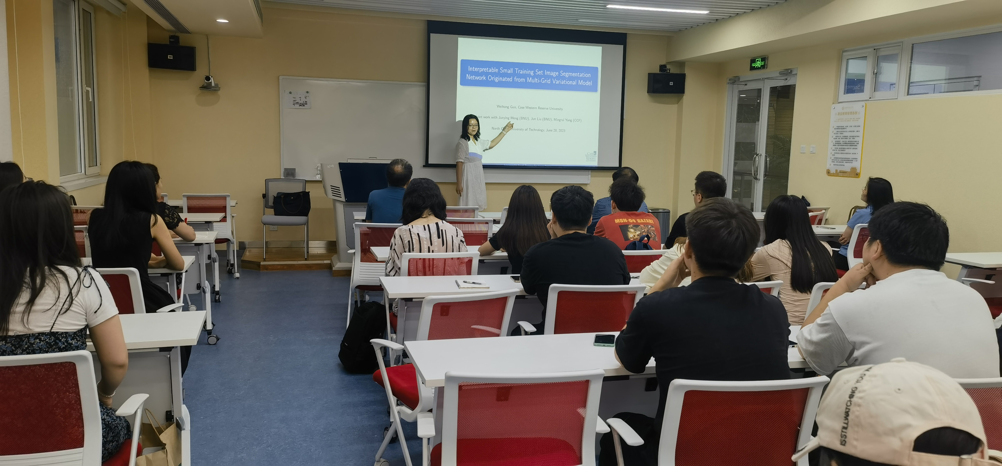应yl23455永利集团邀请,6月28日上午,美国凯斯西楚大学应用数学系系主任郭卫红教授来公司讲学,在广学楼406教室为公司师生做了题为“基于多网格变分模型的可判断小训练集图像分割网络”的学术报告。报告由yl23455永利集团经理李冱岸主持。
